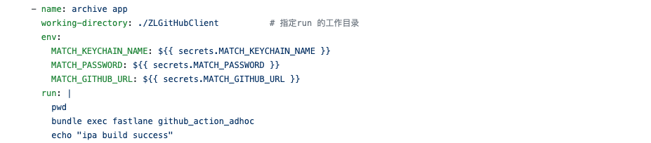 working-directory: ./ZLGitHubClient # 指定run 的工作目录